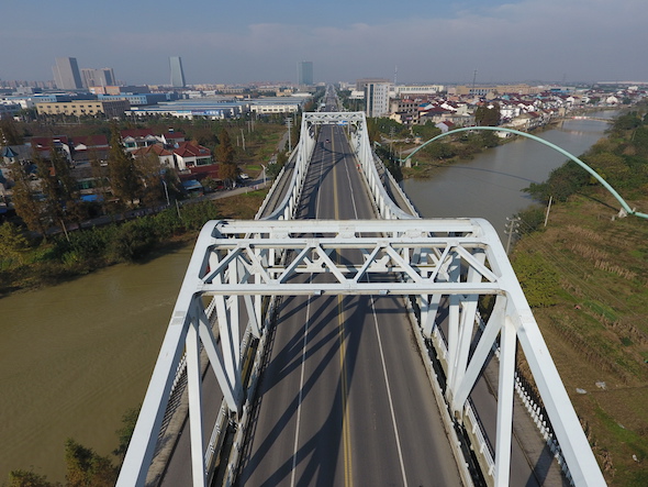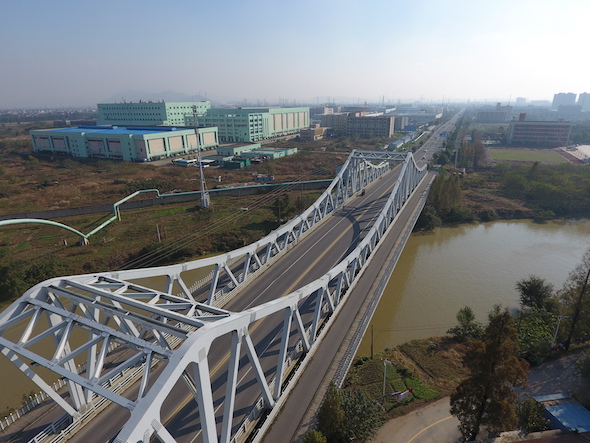 本项目是湖州市长兴县经四线上跨长兴港的一座大桥,也是浙江省第一座市政景观钢桁架桥,该桥采用(62+100+62)m下承式连续钢桁架结构。依托该项目,对少平联半穿式双曲弦杆钢桁架连续桥关键技术进行深入研究,2010年11月30日该课题通过鉴定,被中国公路学会鉴定为三等奖。该桥开创了浙北地区中等跨径桥梁采用钢桥的先河。