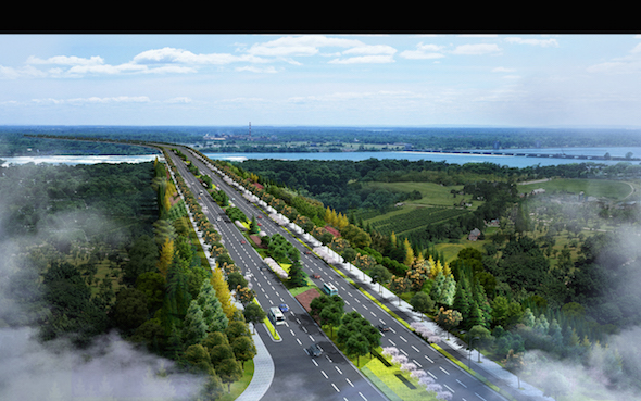 本项目是长兴县南部骨架性交通干道之一,项目采用一级公路结合市政配套标准建设,设计速度80Km/h。全线设大桥2座(汤家斗门2号侨150m/1座,李湖大桥460m/1座),其中李湖大桥上跨Ⅴ级航道。中小桥408m/11座,其中王长港桥跨越Ⅶ级航道。