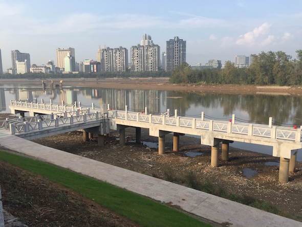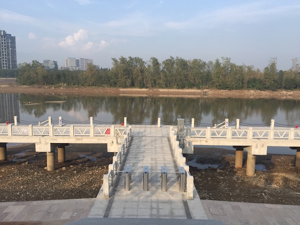 本项目位于武义江南岸,处于金华江、武义江、义乌江三江交汇口,新建港监艇泊位2个(水工结构按100吨级设计),泊位长度52m;新建码头平台一座,平台尺寸52m×7m;新建引桥一座,平面尺寸为14m×5m。